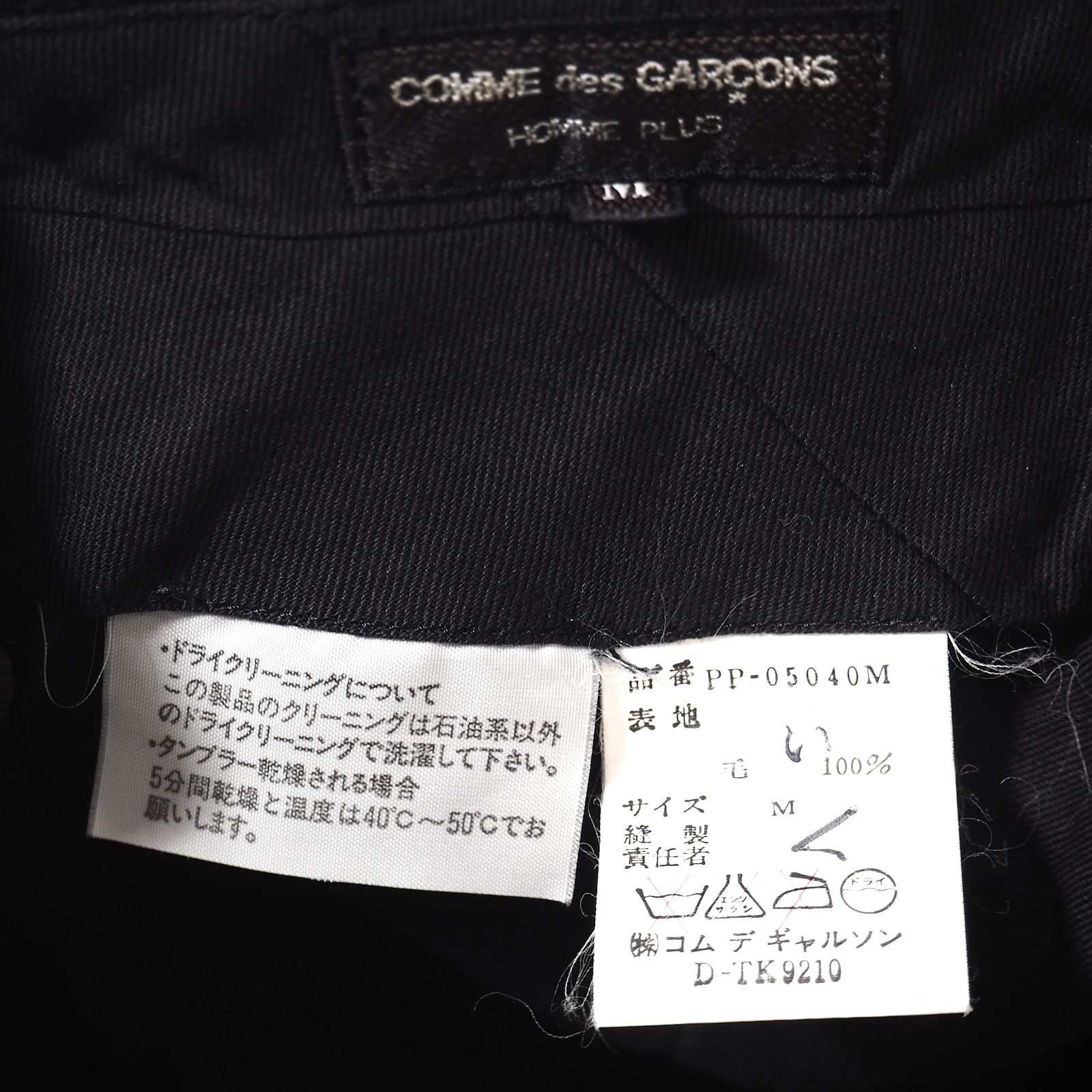 コムデギャルソンオムプリュス COMME des GARÇONS HOMME PLUS ヴィンテージ ウール ギャバジン テーパード パンツ M ブラック メンズ 5-HT 057