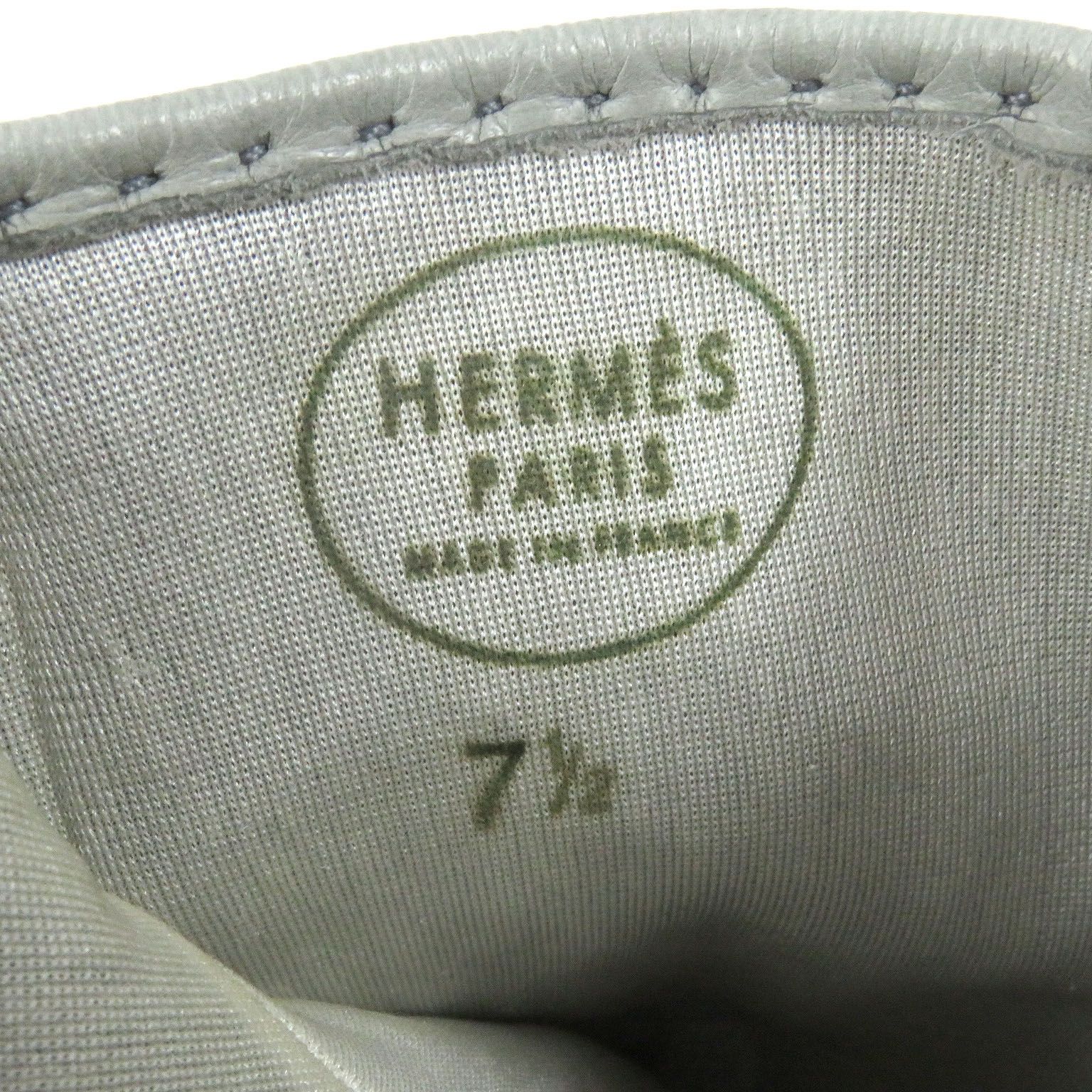 HERMES エルメス ペッカリー 裏シルク100% Hモチーフ トグルボタン レザーグローブ 手袋 ライトグレー 7.5 フランス製 メンズ