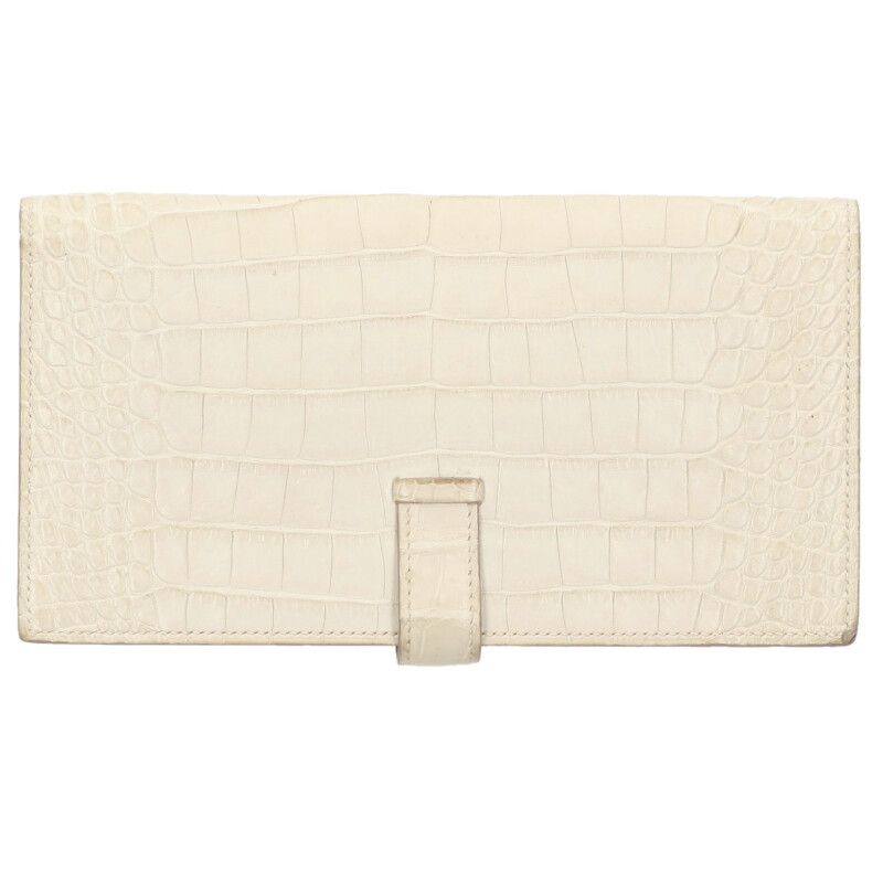 エルメス ベアンスフレ O刻印 SV金具アリゲーターマット財布 メンズ