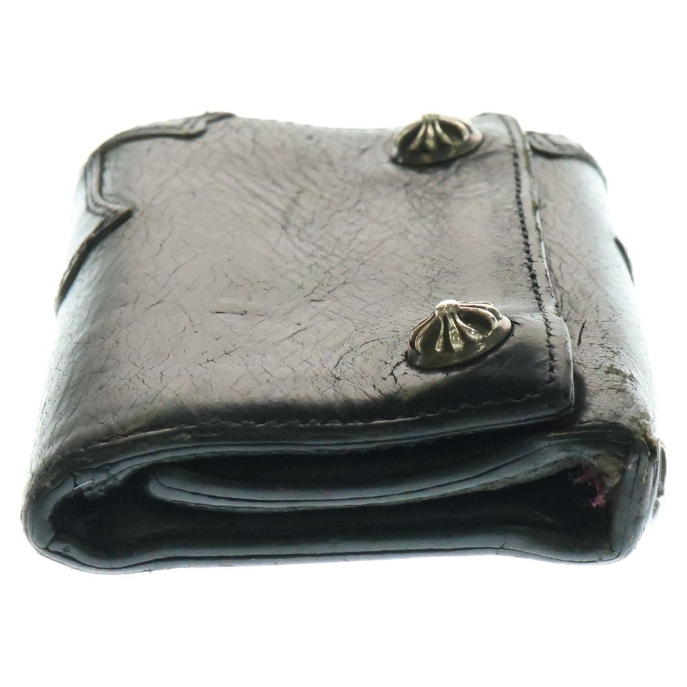 CHROME HEARTS クロムハーツ 3 FOLD 3フォールド クロスパッチ付きクロスボールボタン レザーウォレット 財布 ブラック BCA 364