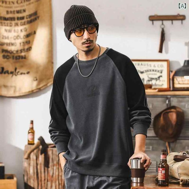 4 XL 秋冬 メンズ 服 シンプル ファッション オシャレ 大人 かっこいい 大きいサイズ ストリート 紳士服 アメリカン レトロ 350 グラム スウェット シャツ ワッフル 長袖 T