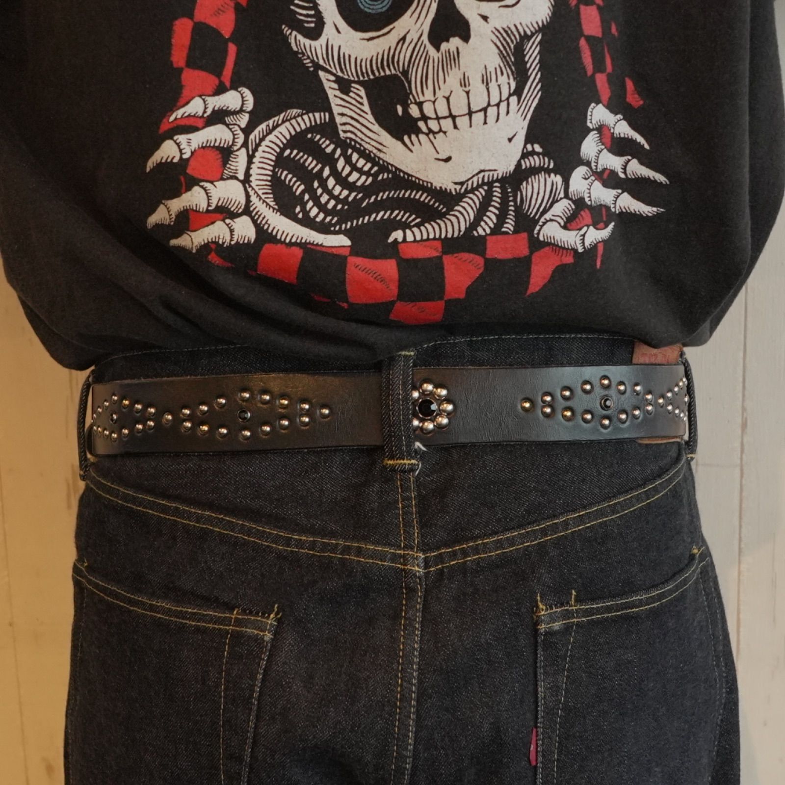 Re coo サイズ調整して製作いたします Studs Belt Black -スタッズベルト ブラック -