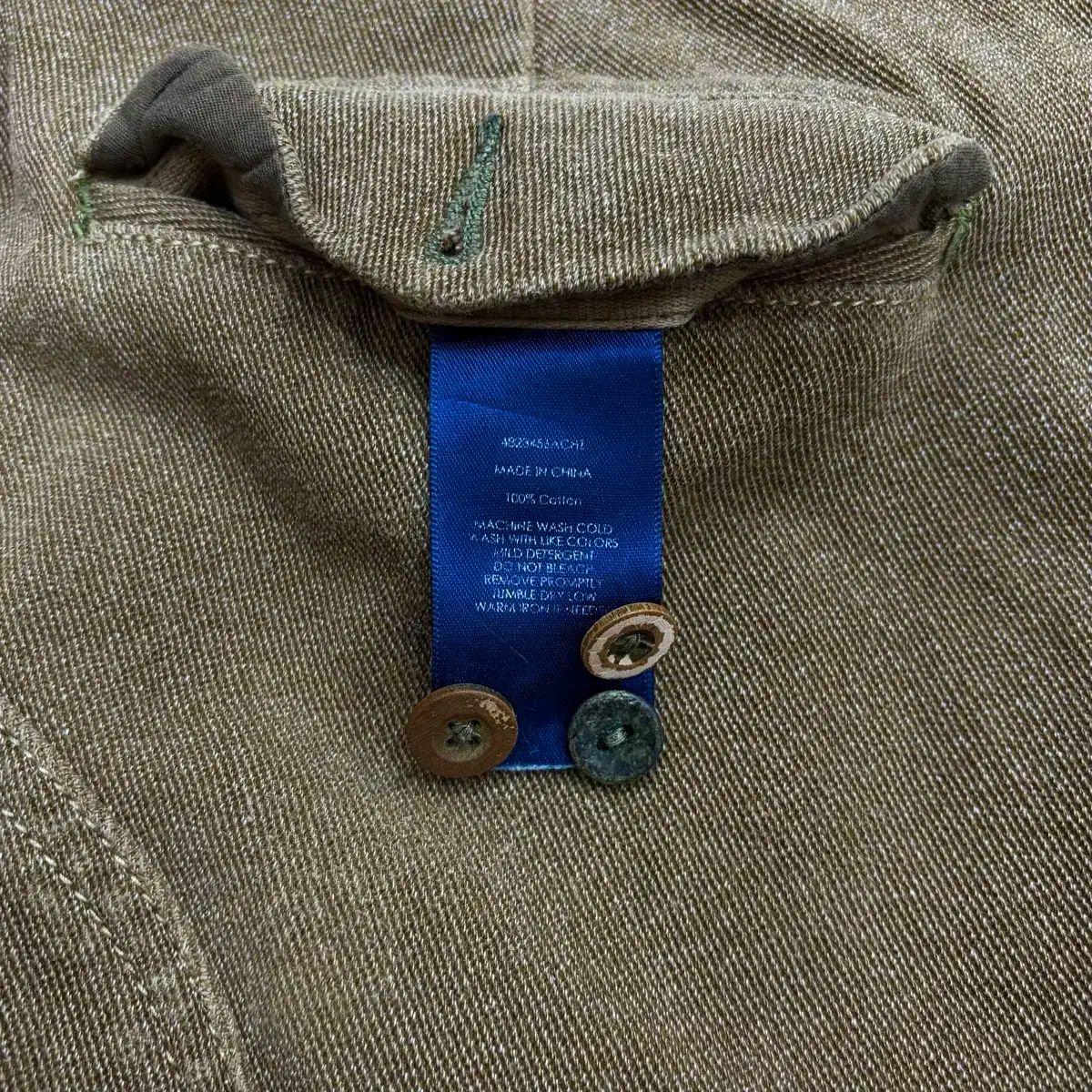 ズボン左ポケットのボタンが紛失した状態ですが、予備のボタンがありますので、それで交換していただければと思います。
