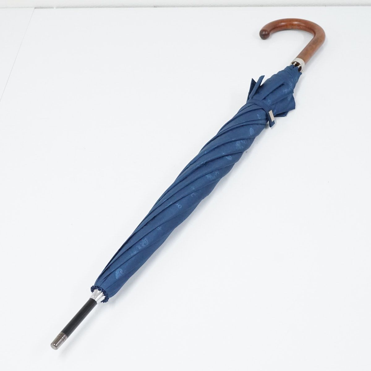 紳士傘 Orobianco オロビアンコ ブランド 総柄 コロナロゴ 木製手元 ブルー 65 cm S 3283