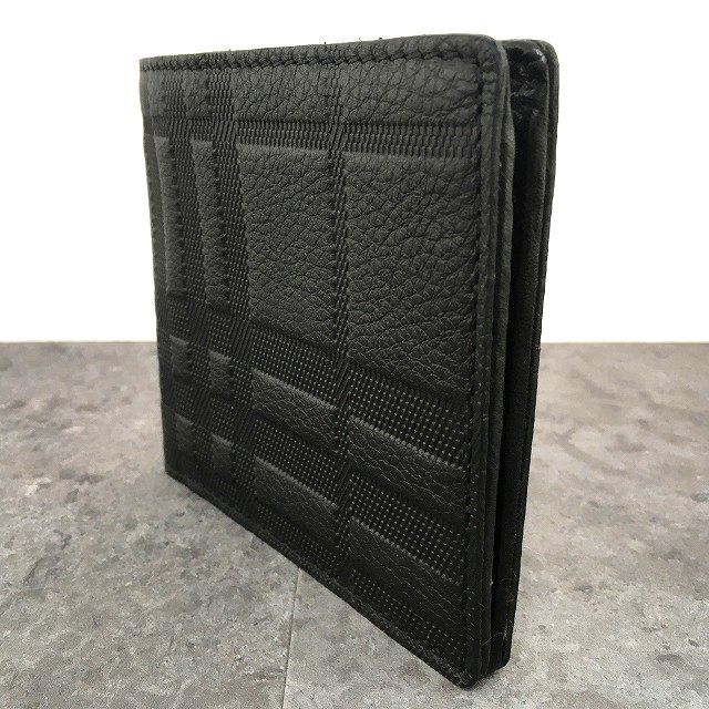 ブラックレザーにチェックが型押しされたバーバリーらしいお財布です。