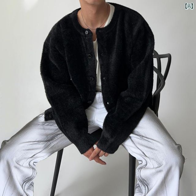 秋冬 コーデ メンズ 服 シンプル ファッション オシャレ 大人 かっこいい 大きいサイズ ストリート 紳士服 黒 ラウンドネックニット カーディガン セーター ジャケット