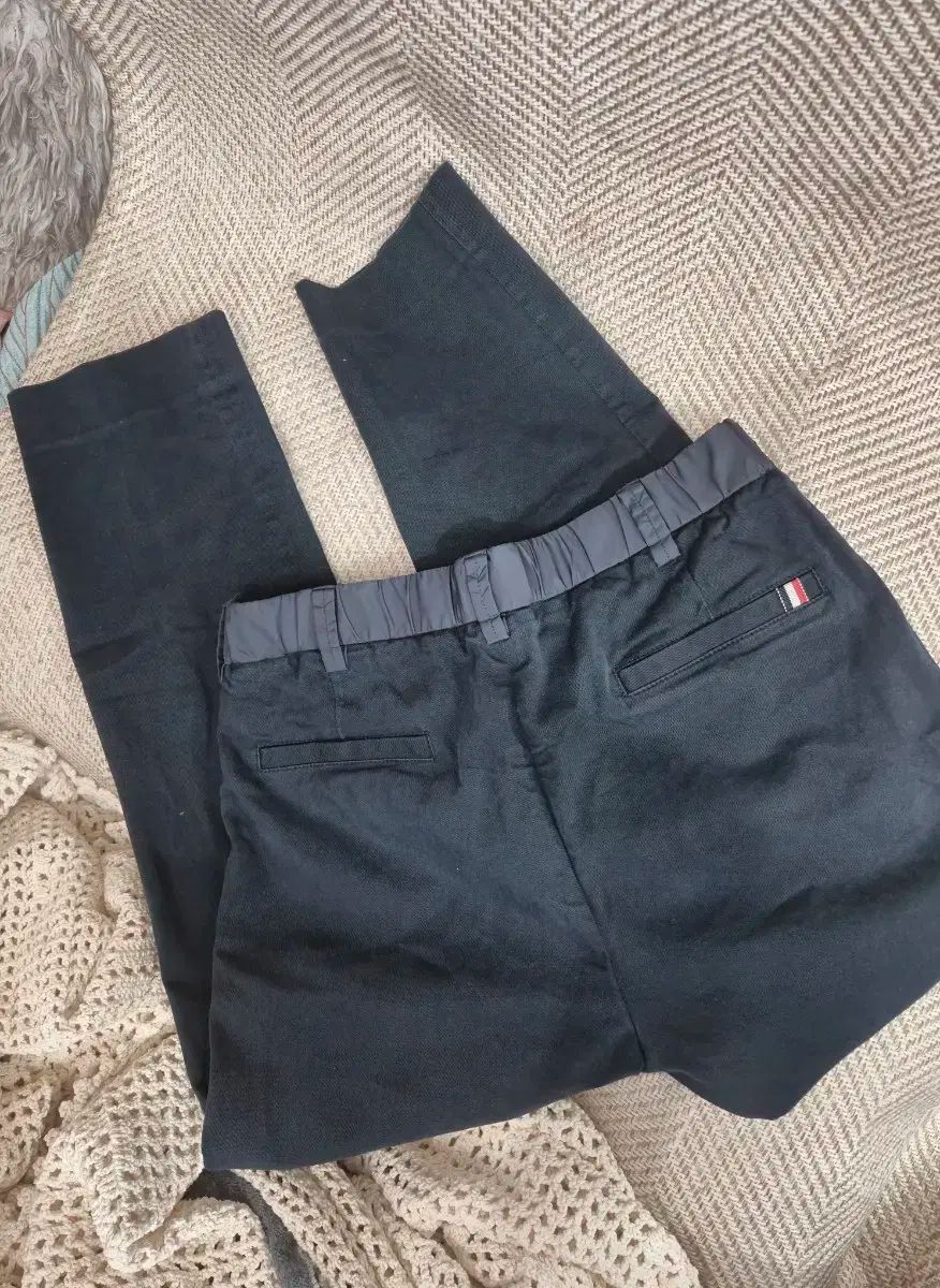 写真でご覧いただくと、ウエストの紐が紛失しており、アイレット(穴)のみ残っています。