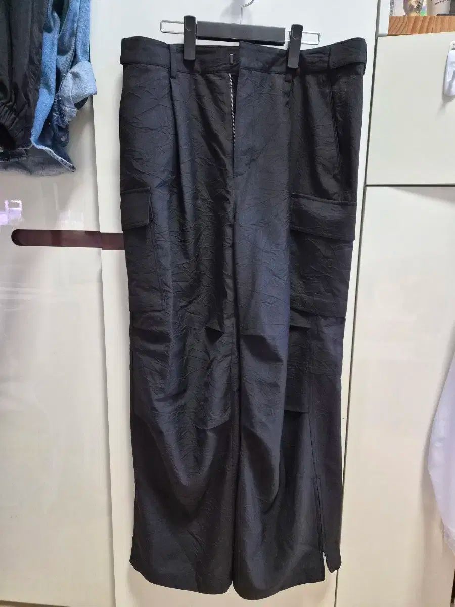 25ss リンクル ポリウール カーゴ パンツ - ブラック