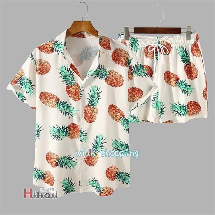 セットアップ メンズ 夏 春 上下セット 半袖シャツ ハーフパンツ アロハシャツ ストライプ柄 カジュアル 海