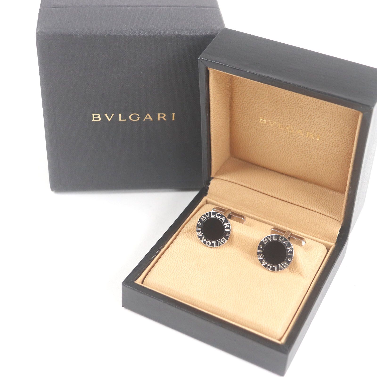 BVLGARI ブルガリ SV 925 オニキス ブルガリブルガリ マン カフスボタン カフリンクス シルバー ブラック 箱 ケース付き イタリア製 総重量10.18 g メンズ