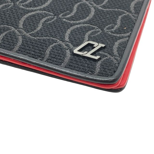 クリスチャン ルブタン 二つ折り財布 カードウォレット キャンバス レザー ブラック レッド メンズ Christian Louboutin 感 上品デザイン モデル