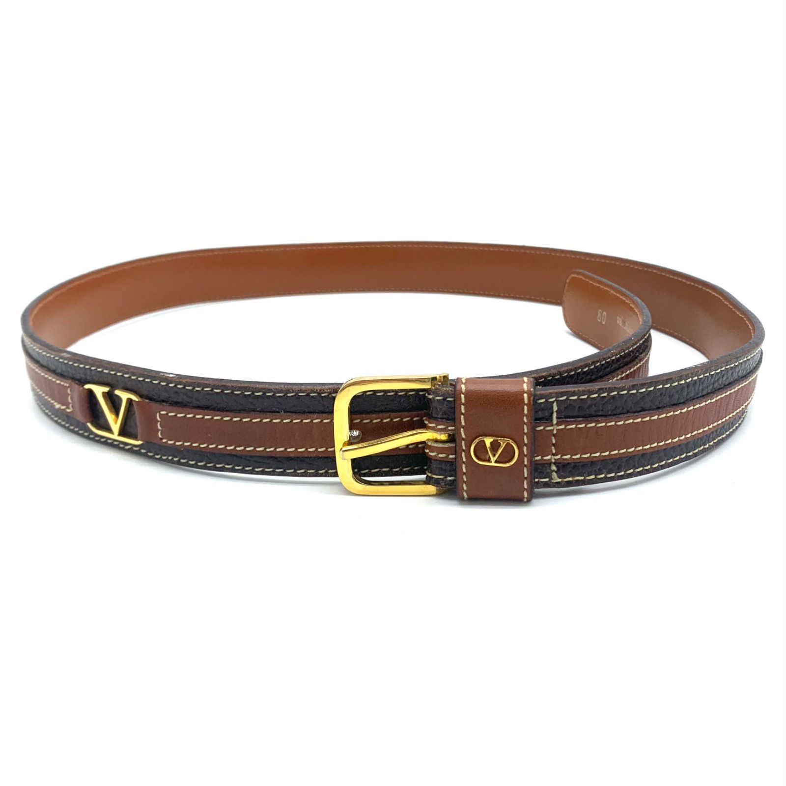 ベルト 80 レザー ゴールド金具 ロゴ ユニセックス ブラウン