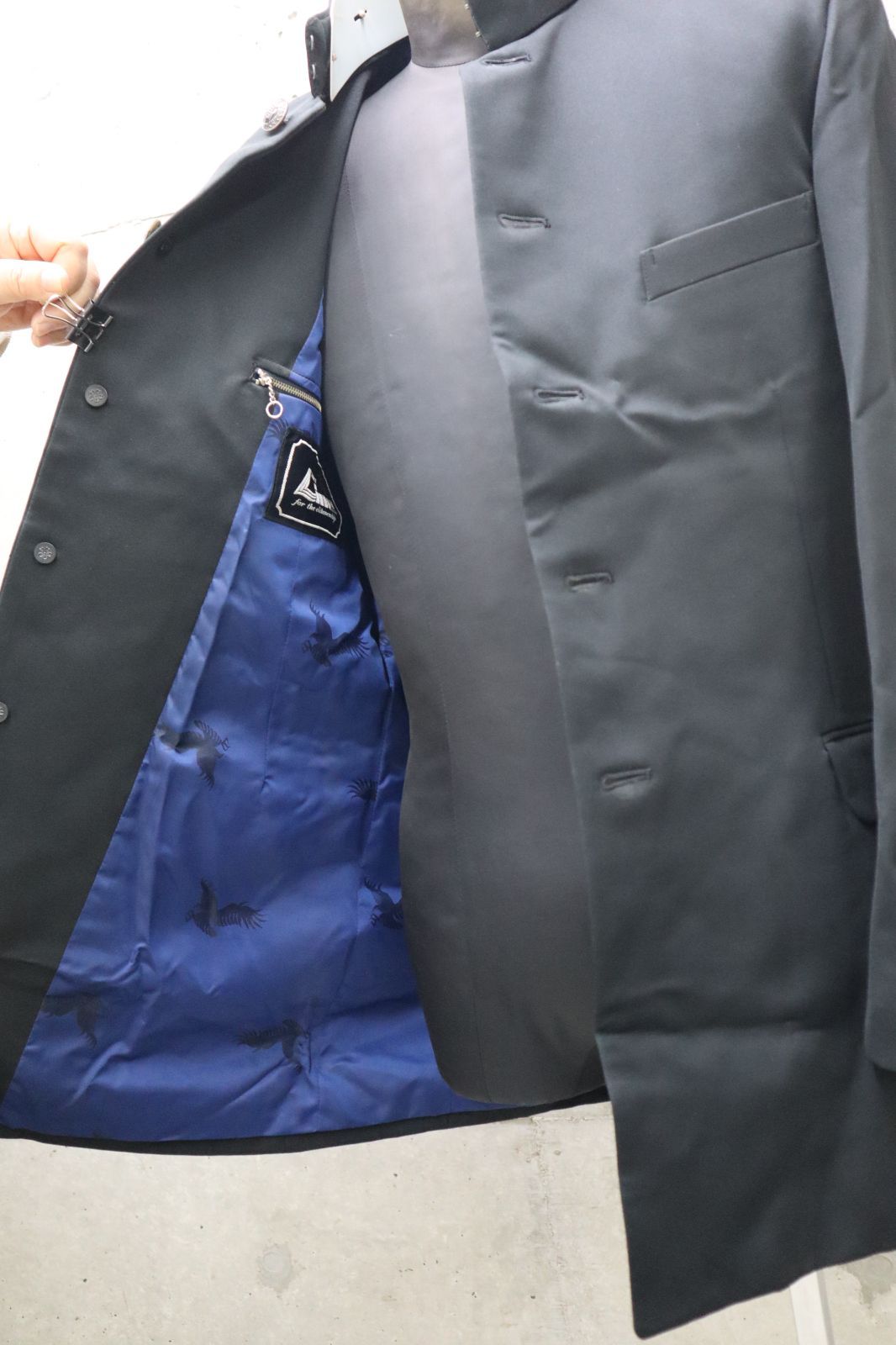 ・裏地、ポケット ブルーの柄付き