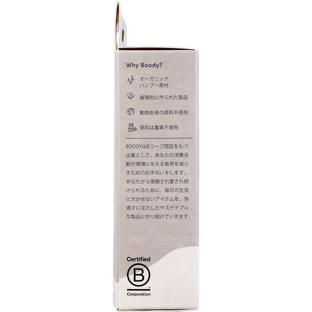 ●BOODYはBコープ認証をもつ企業として、あなたの消費活動が環境に与える負荷を減らすためのお手伝いをします。あなたから信頼され愛され続けられるために、毎日の生活に欠かせないアイテムを、快適さに注力したサステナブルな製品に作り続けていきます。