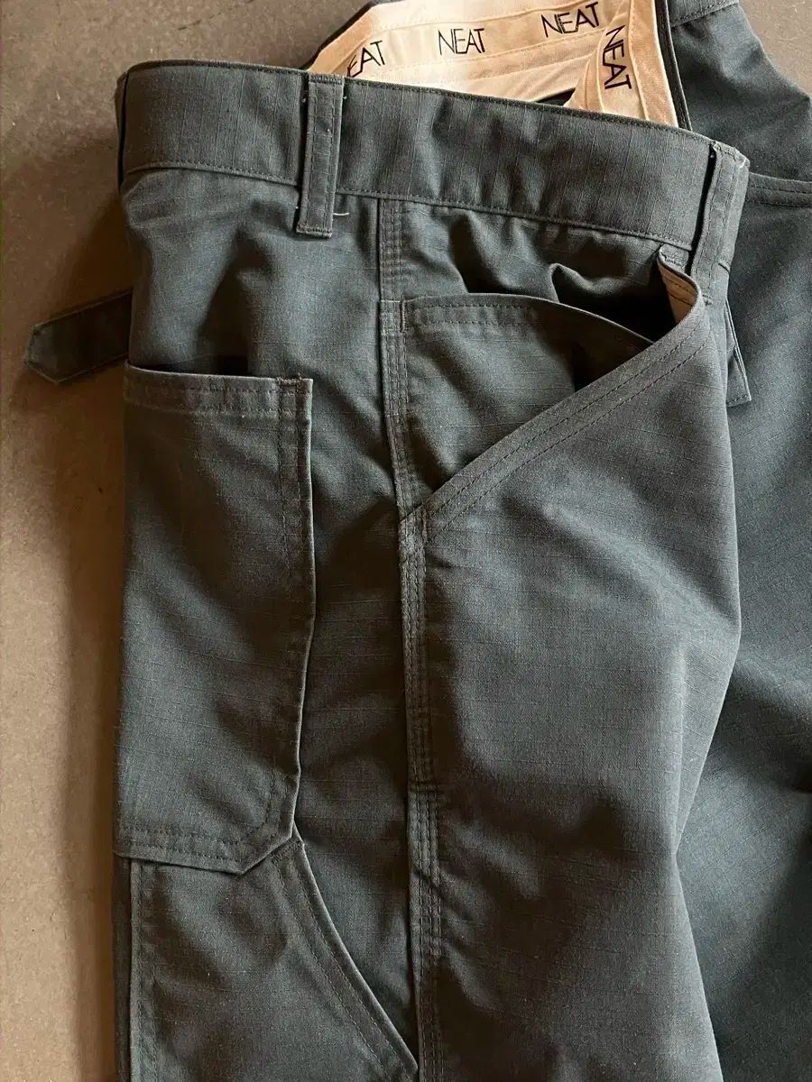 パンツ専門 日本ブランド、ニートTOKYO NEATのペインターパンツです。生地はオリジナル デッドストック アメリカ空軍 リップストップ生地で、現在はない 色 カラーの魅力的なコットンです。