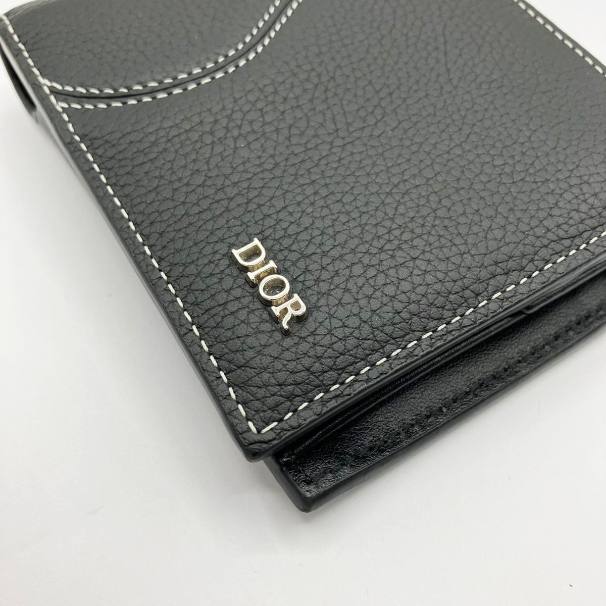 DIOR Saddle 二つ折り財布 コインケース付き ブラック メンズ ディオール サドル 黒 グレインドカーフスキン マーケトリー