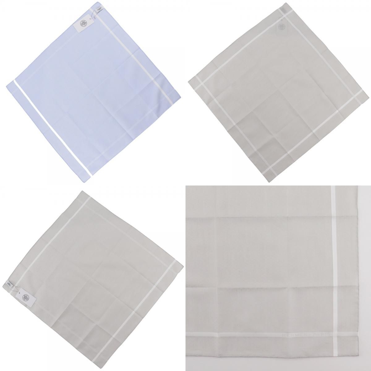 HERMES エルメス ジャガードH ハンカチーフ セット コットン グレー 水色 メンズ ハンカチ
