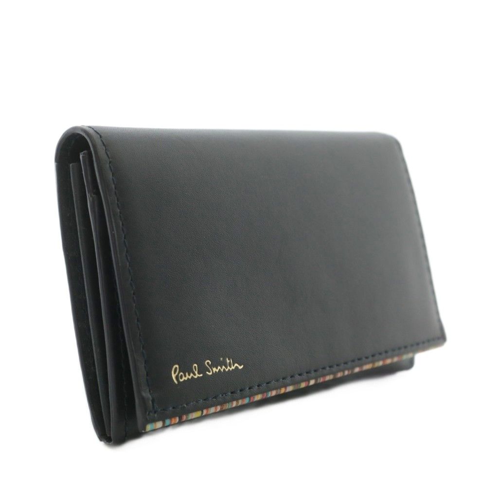 ポールスミス PAUL SMITH ストライプポイント2 カードケース 名刺入れ 二つ折り レザー ロゴ 紺 ネイビー PSC 754 XZ GY 18