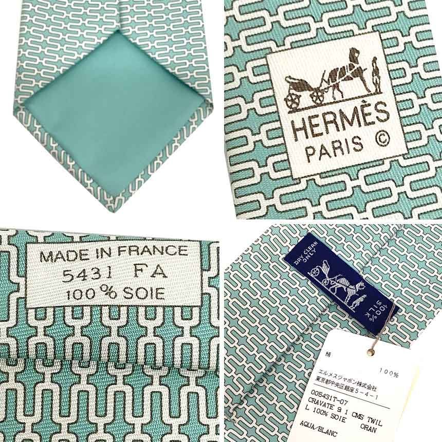 HERMES エルメス ネクタイ CRAVATE 9.1 CMS ORAN ライトブルー グリーン aq 12101