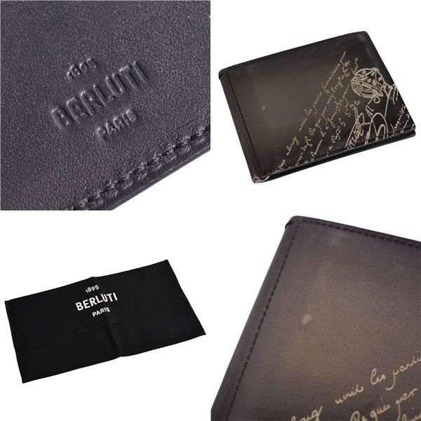 美品 ベルルッティ Berluti 財布 マネークリップ コンパクトウォレット パティーヌ カリグラフィ スクリット ブラック