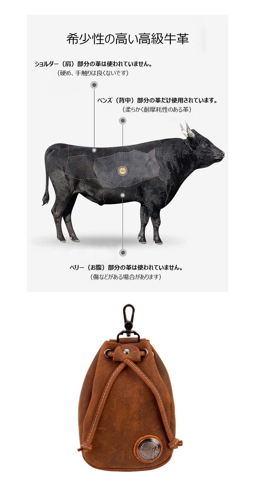 3.【メイン素材】天然厚手牛革,本革