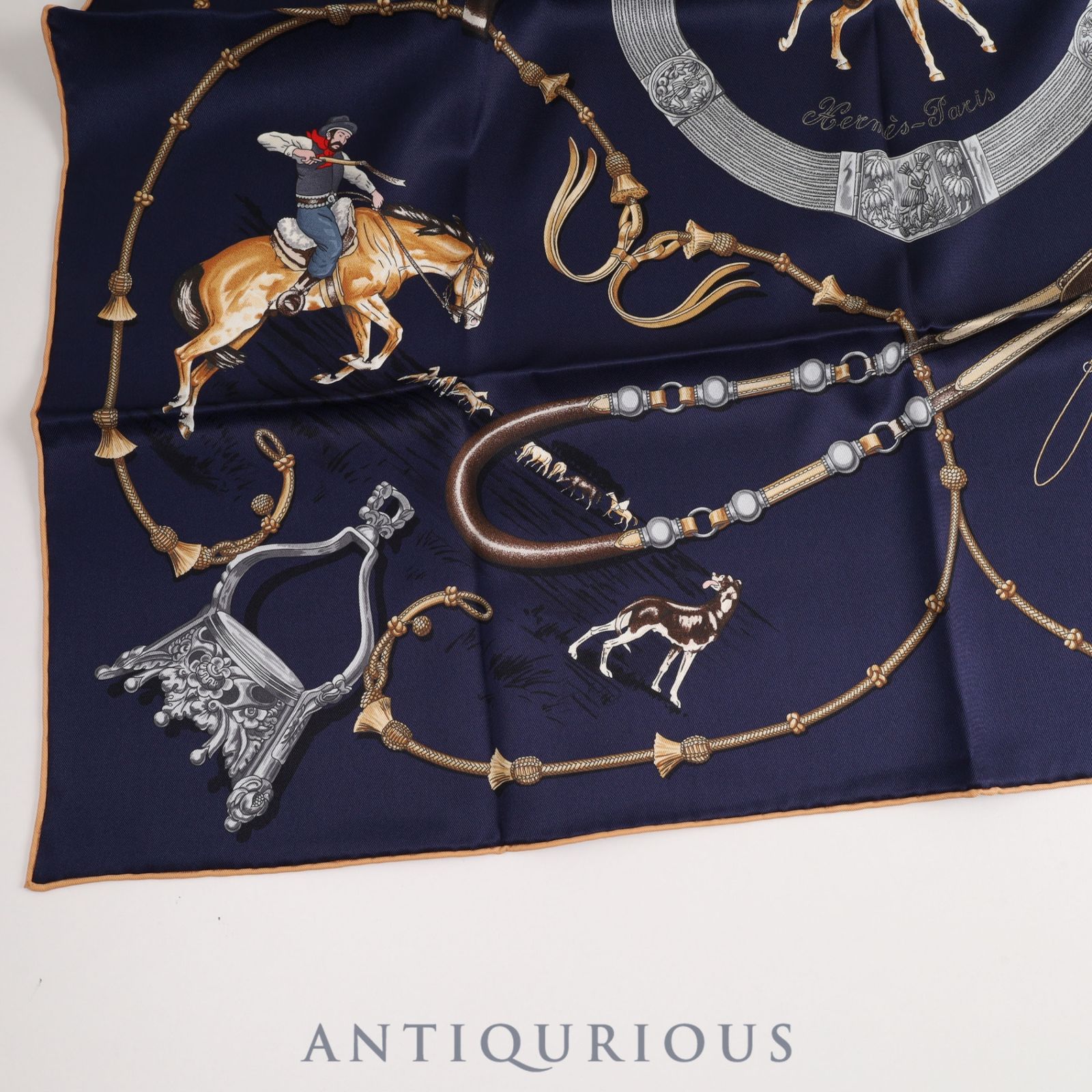 エルメス スカーフ カレ70 PAMPA 大草原 ネイビー 箱 SILK 100%