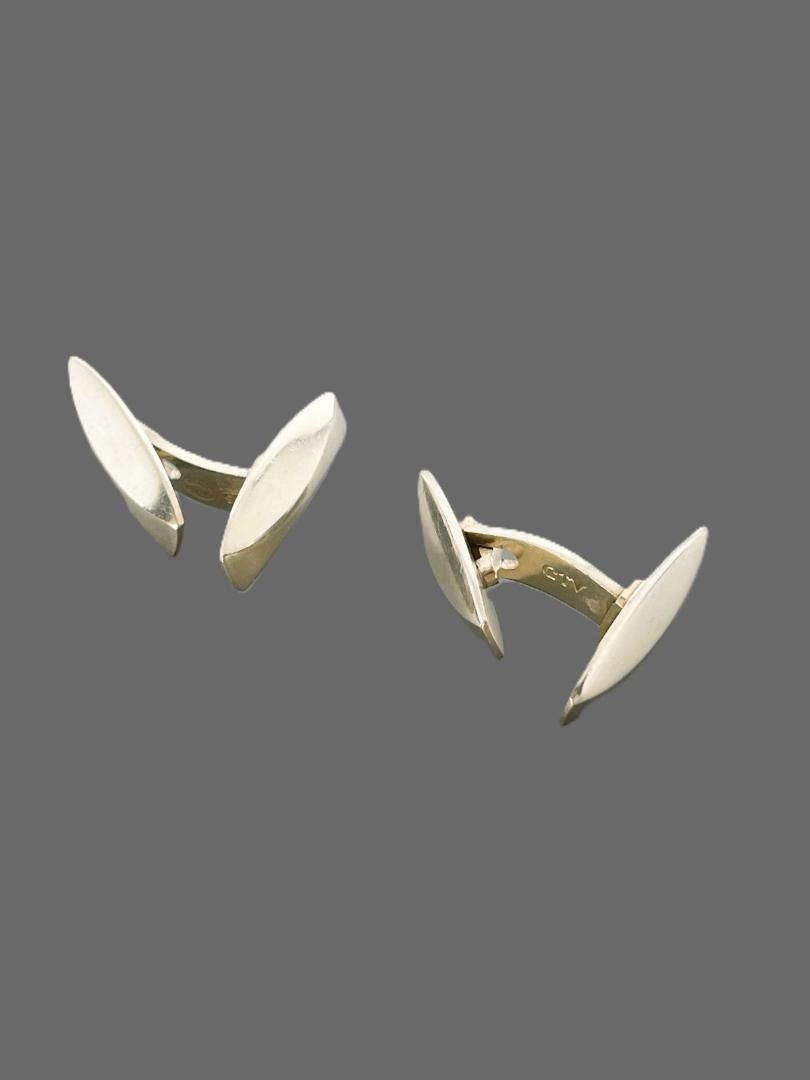 ジョージジェンセンのエレガントなシルバーのオーバル形状カフリンクス、フォーマルな装いに最適。