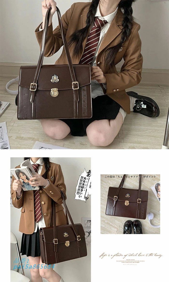 スクールバッグ 合皮 通学 女子高生 トートバッグ 防水 大容量 片肩 PU素材 ショルダーバッグ 制服 手提げ JK制服 レディース 斜め掛け カジュアル バッジ付き pai 5 a 865684