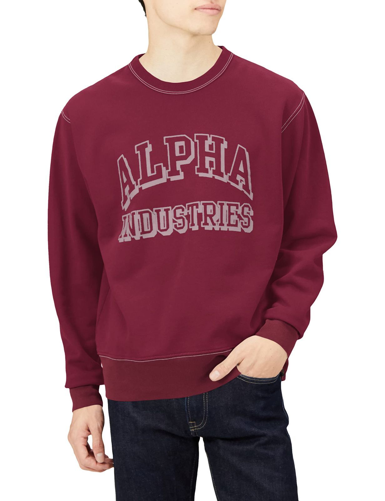 L_MAROON アルファインダストリーズ トレーナー 古着風クルーネックスウェット ブランドロゴプリント TC 1554-3 メンズ MAROON L