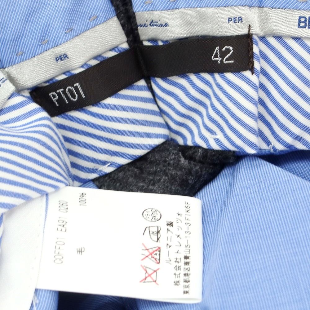 ピーティーゼロウーノ PT 01 BEAMS F別注 ウール チェック ドレススラックスパンツ グレー サイズ42 メンズ