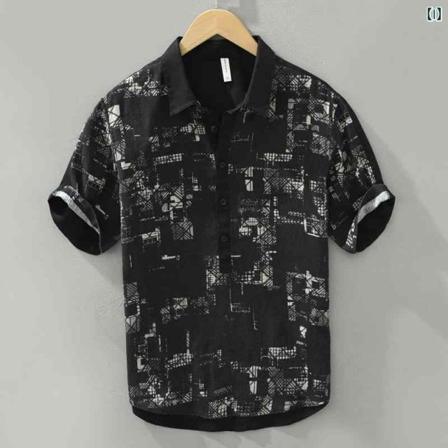 商品名:メンズ ファッション 服 男性用 オシャレ シンプル 大人 かっこいい 大きいサイズ ストリート 紳士服 夏 プリント リネンシャツ 半袖 カジュアル 通気性 コットンリネン 生地 半袖 シャツ