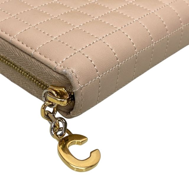 セリーヌ S-AT-4158 S-GA-4178 財布 長財布 レディース ラウンドファスナー キルティング レザー Cチャーム ベージュ CELINE 上品な印象 感あるデザイン 洗練された佇まい