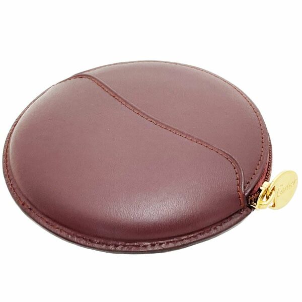 カルティエ コインケース マストライン コインパース レザー 革 ボルドー ワインレッド えんじ Cartier 2 C ラウンド 丸型 小銭入れ