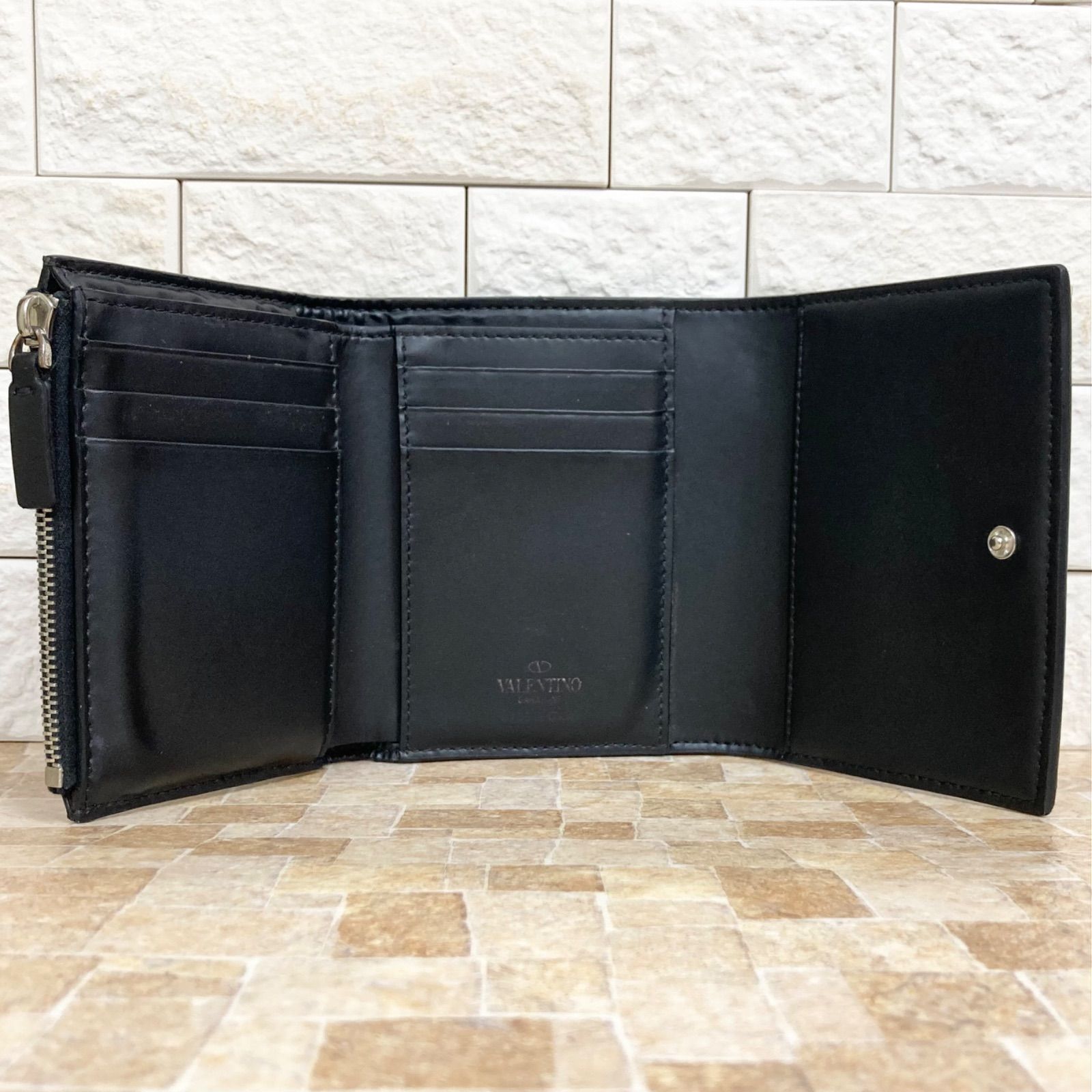ヴァレンティノガラヴァーニ 3つ折り財布 カーフレザー ブラック VLTN ロゴ 三つ折り財布 ミニ財布 コンパクトウォレット 黒