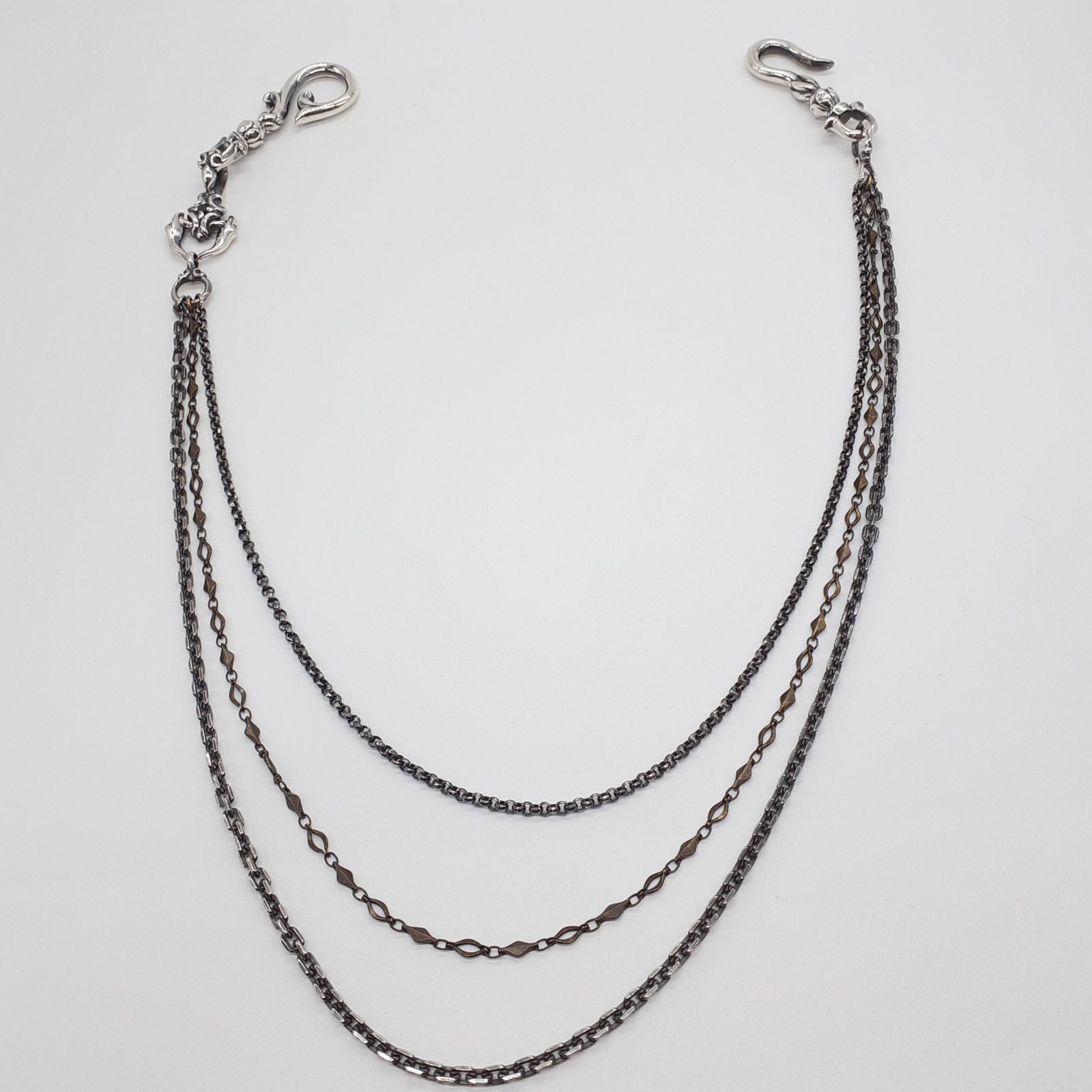 ★3種類のデザインチェーンが弧を描くウォレットチェーン。実用性と美しさを兼ね備えるハイブリッドなアイテムです。