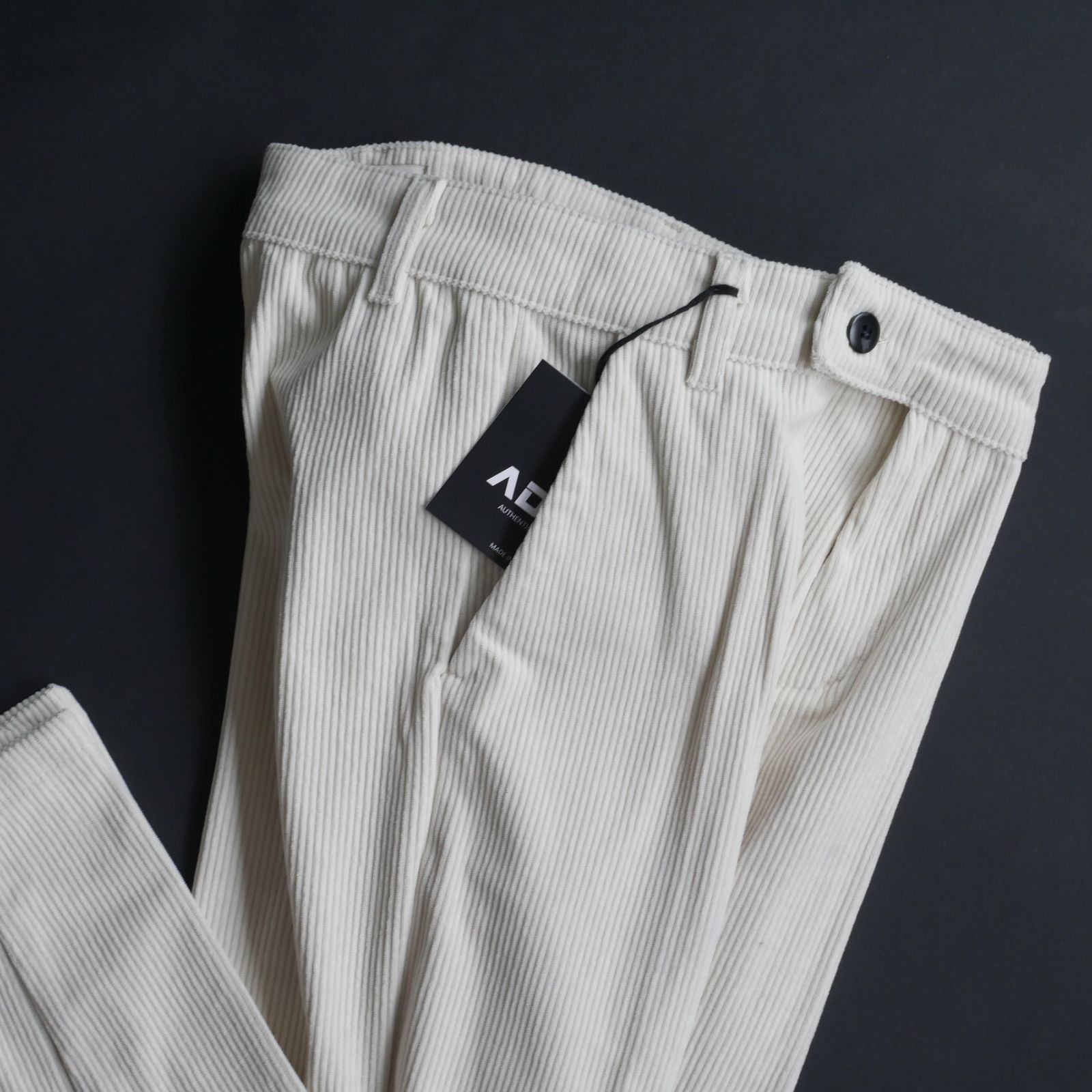 ●イタリアのスタイリッシュなデザインが特徴の「AD.メイドインイタリー」より、2025-26秋冬コレクションの新作コーデュロイパンツでございます。イタリア ミラノの感性が息づく繊細な素材選びと美しいシルエットが魅力の一本で、日本国内では当方のみが扱う大変希少なブランドとなります。