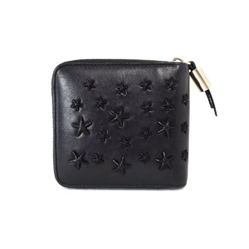 ジミーチュウ JIMMY CHOO 二つ折り財布 ラウンドファスナー スタッズ レザー 黒 ブラック AA
