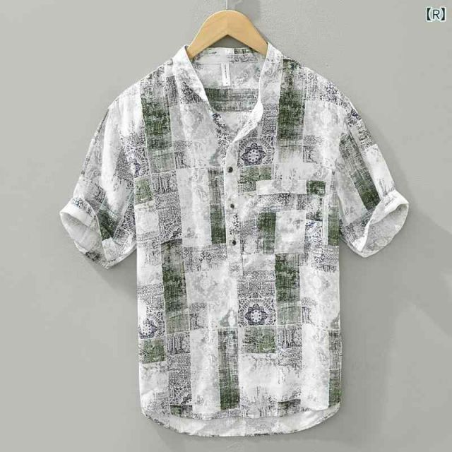 商品名:メンズ ファッション 服 男性用 オシャレ シンプル 大人 かっこいい 大きいサイズ ストリート 紳士服 夏 プリント リネンシャツ 半袖 カジュアル 通気性 コットンリネン 生地 半袖 シャツ