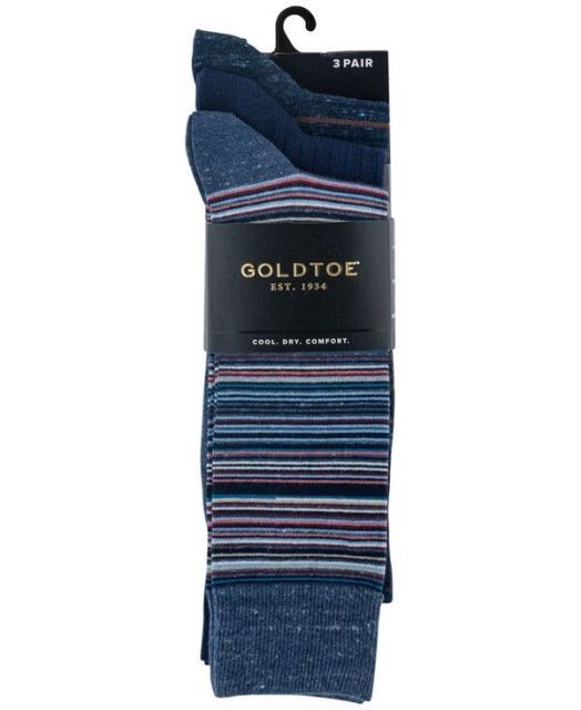 ゴールドトゥ メンズ 靴下 アンダーウェア Men s 3-Pack Frankie Stripe Reinforced Toe Crew Socks Blue stripes multi