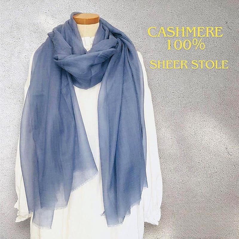 彡 niko 25 シアー カシミヤ ストール 薄手 大判 エアリー 軽量 シルクのような肌触り UVカット 冷房対策 春夏 プレゼント ギフトBOX付き 50 g bluegray 0