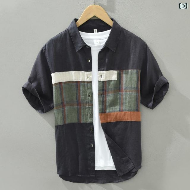 商品名:メンズ ファッション 服 男性用 オシャレ シンプル 大人 かっこいい 大きいサイズ ストリート 紳士服 夏 プリント リネンシャツ 半袖 カジュアル 通気性 コットンリネン 生地 半袖 シャツ