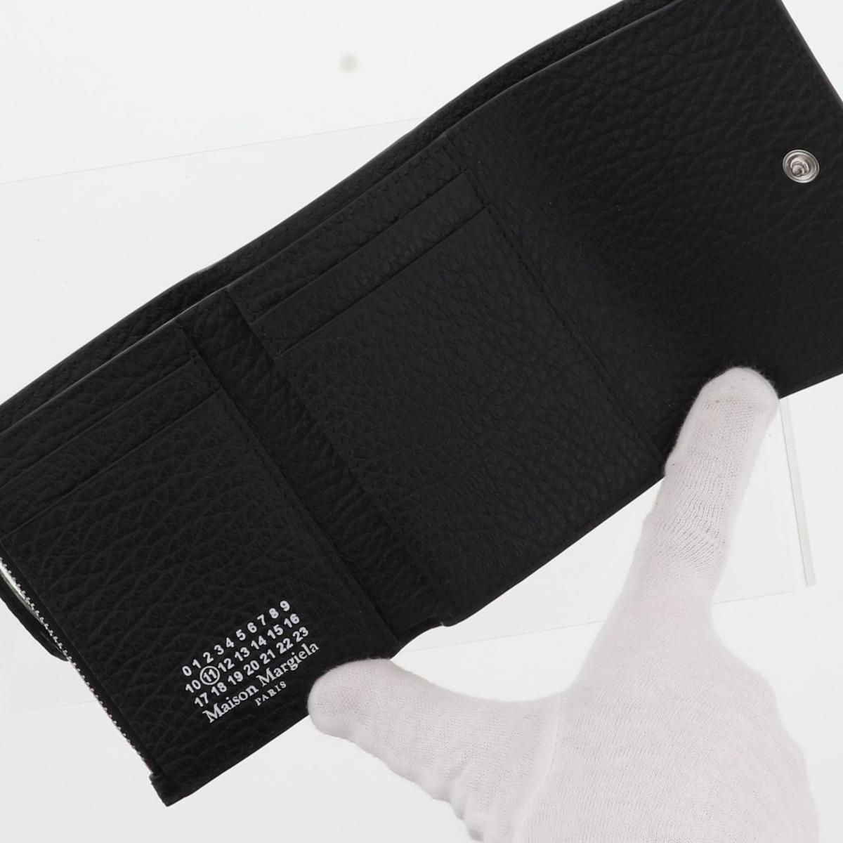 上品 Maison Margiela メゾンマルジェラ レザーエンベロープウォレット 財布 三つ折り財布 小銭入有 Black un S