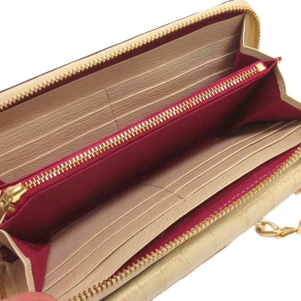 【商品名】ADMJ アクセソワ Accessoires De Mademoiselle 美品 ウォレット チェーン クロコ型押し 財布 小銭入れ お札入れ レザー アイボリー