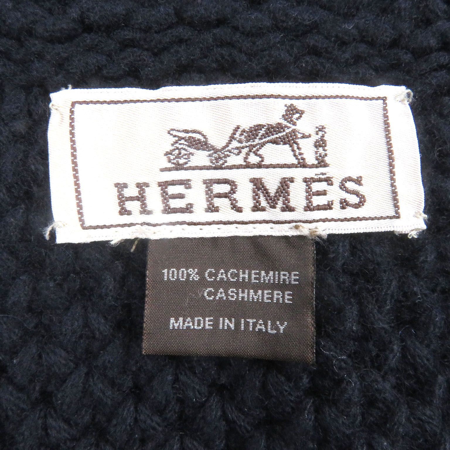 HERMES エルメス カシミヤ100% ケーブル編み ニットマフラー スヌード 防寒具 ダークネイビー イタリア製 メンズ