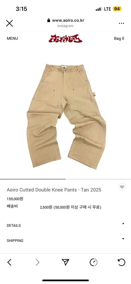 アオイロ ダブルニー パンツ タン 2025 2 サイズ