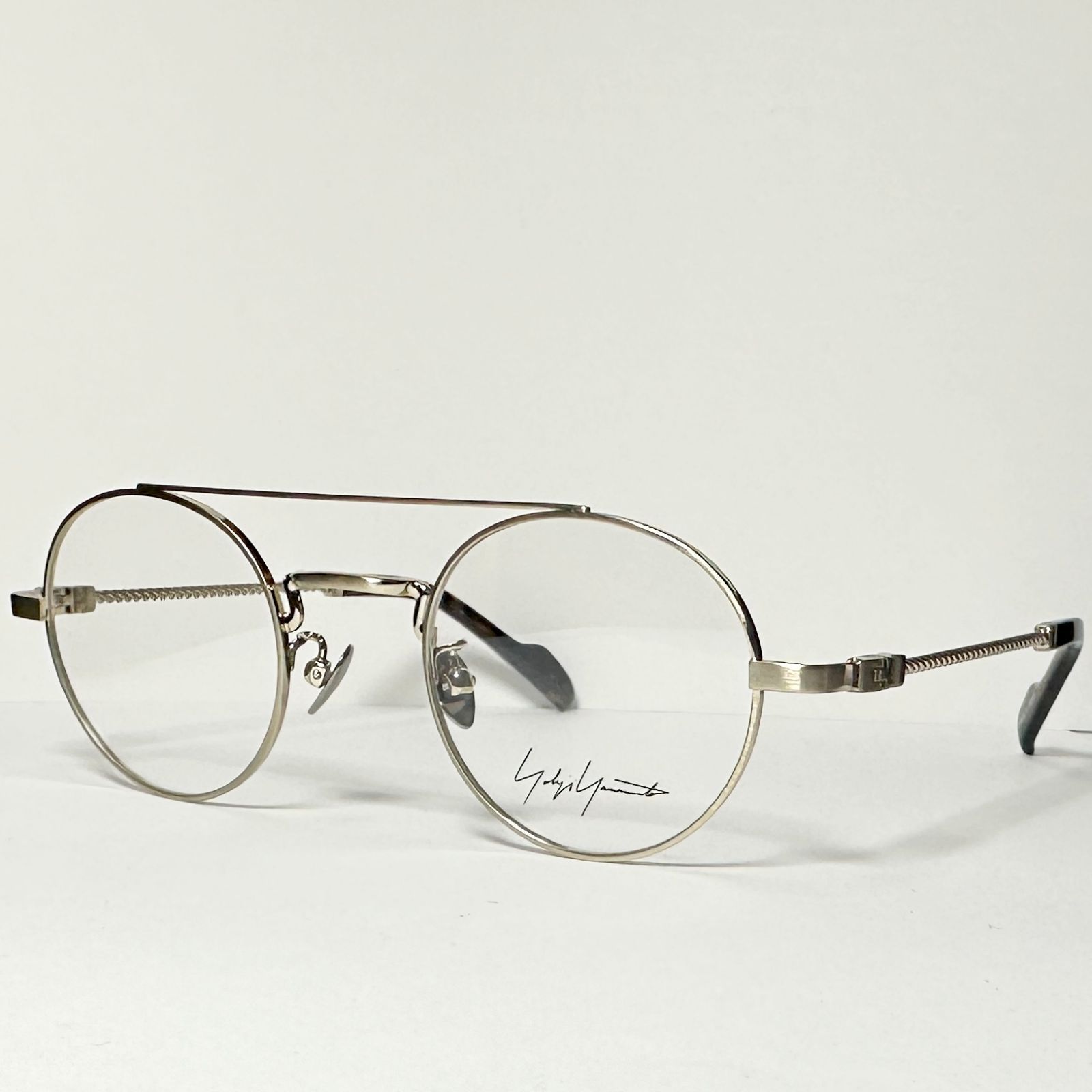 Yohji Yamamoto ヨウジヤマモト YY 19-0027 4 金色 べっ甲柄 小振り 丸メガネ ケース付き ダブルブリッジ ツーブリッジ Y 3