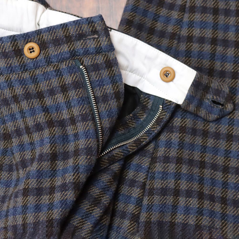 上質なウールをベースにしたツイード素材を使用し、季節感とクラシックな雰囲気を兼ね備えたジョッパーズパンツ。ウール特有の温もりとツイードならではの豊かな表情が魅力で、チェック柄がスタイリングに上品なアクセントを加えます。ツータック仕様により腰まわりにゆとりを持たせながら、裾にかけてすっきりとテーパードしたジョッパーズシルエットが、美しいラインを演出。程よいリラックス感とエレガンスを両立したデザインは、大人の余裕を感じさせてくれるアイテムです。