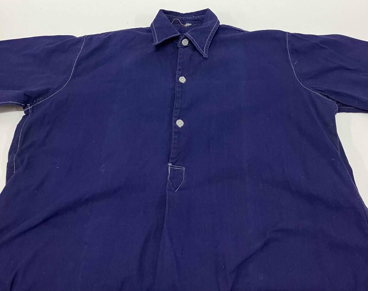 EURO VINTAGE ユーロヴィンテージ 30 S 40 プルオーバー スモック グランパ 長袖シャツ サイズ不明 ネイビー