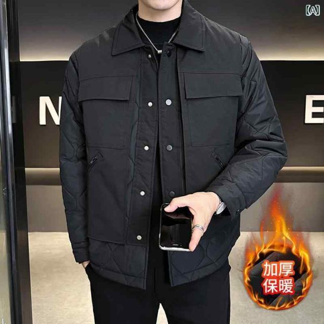 秋冬 コーデ メンズ 服 シンプル ファッション オシャレ 大人 かっこいい 大きいサイズ ストリート 紳士服 シャツ コットン ジャケット アウター 綿服