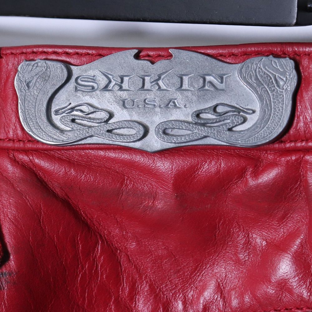 SKKIN FX レザー編込スエード切替ファイヤーパターンパンツ Mサイズ レッド